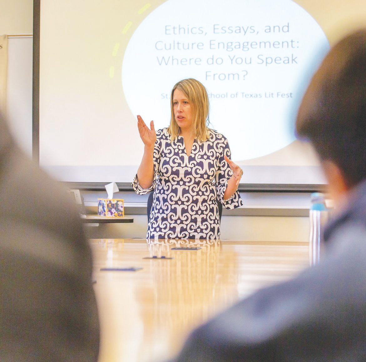 During the 2024 Literary Festival, ethicist Dr. Elizabeth Kincaid used her presentations to five upper school English classes to discuss morality and the personal value of tradition-based reasoning.