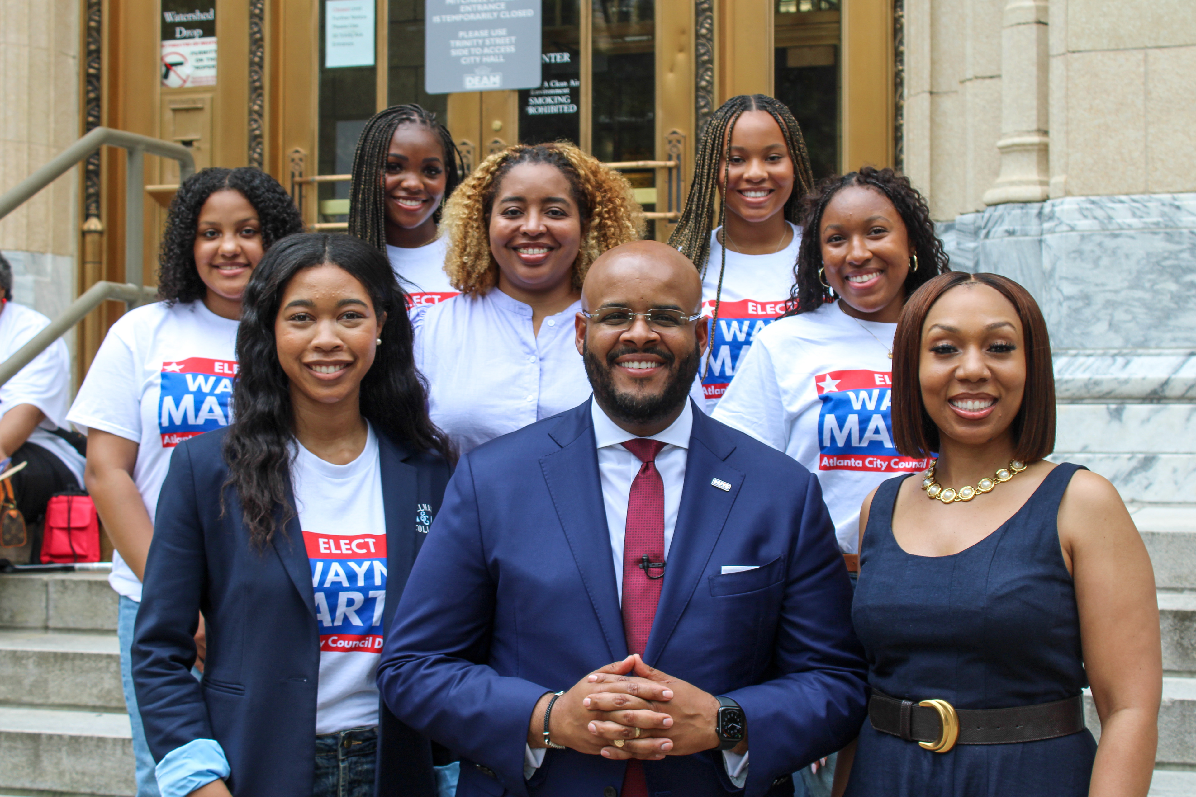 Freeman stands with Councilman Martin and a group of Spelman students she is mentoring in the realm of social justice and political advocacy. (Photo/Noah Cathey)