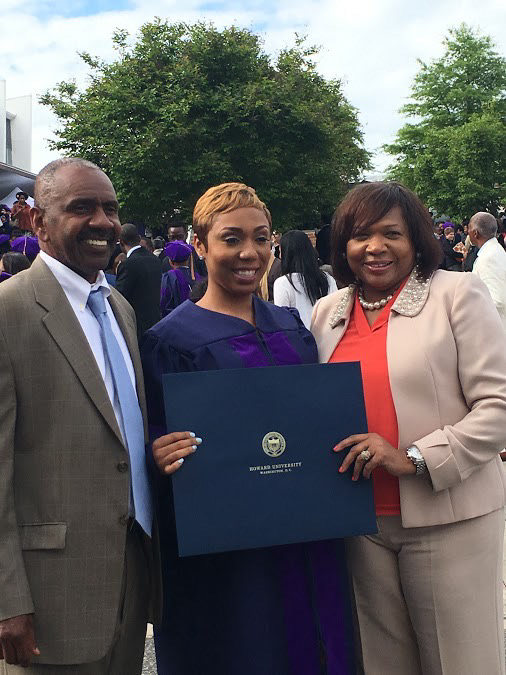 Freeman stands between her parents after graduating from Howard Law School. (Photo/Courtesy Christa Freeman)