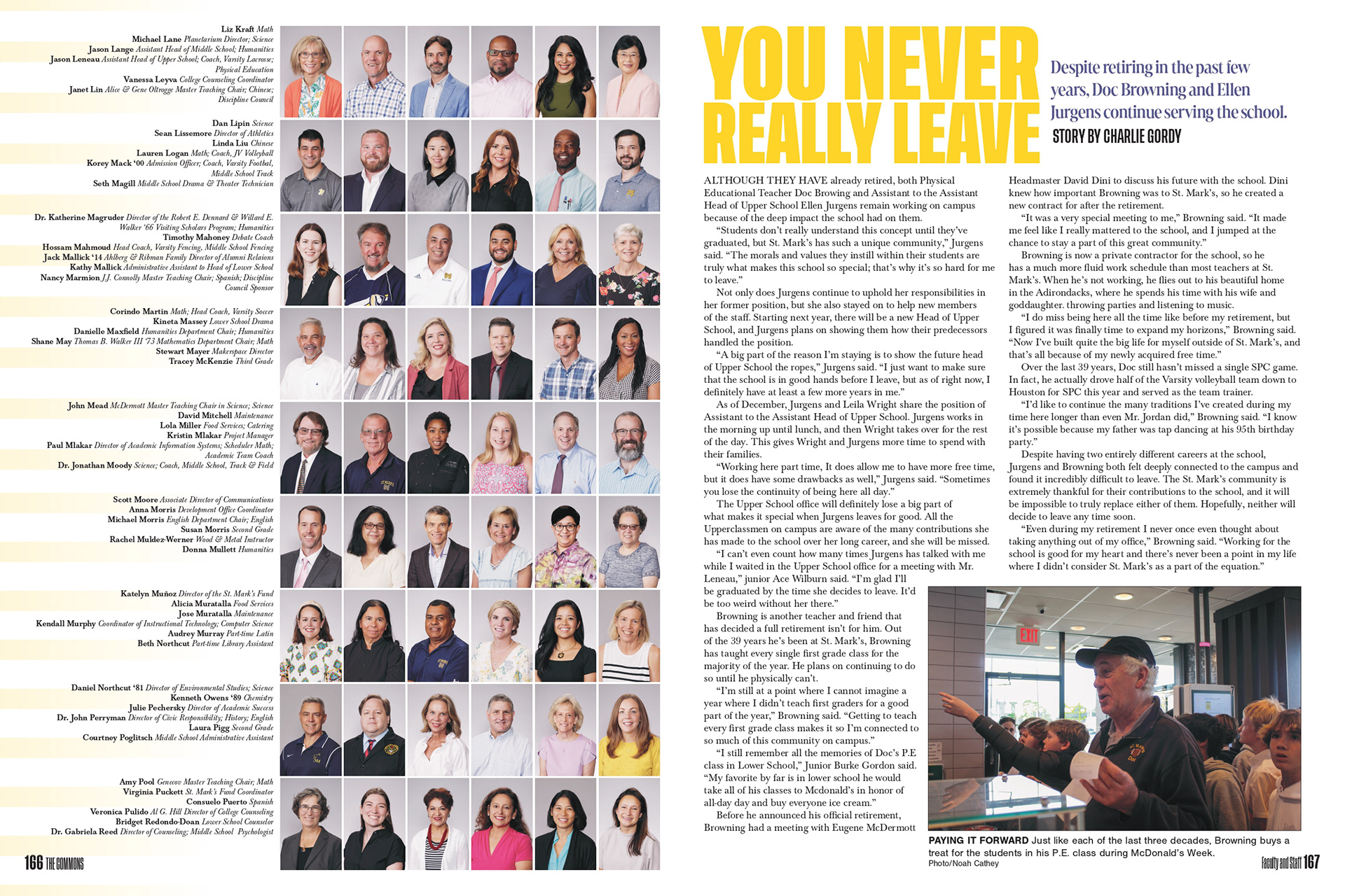 This spread is the first in the profile section and highlights the connection between former headmaster Arnie Holtberg and Centennial Hall.
